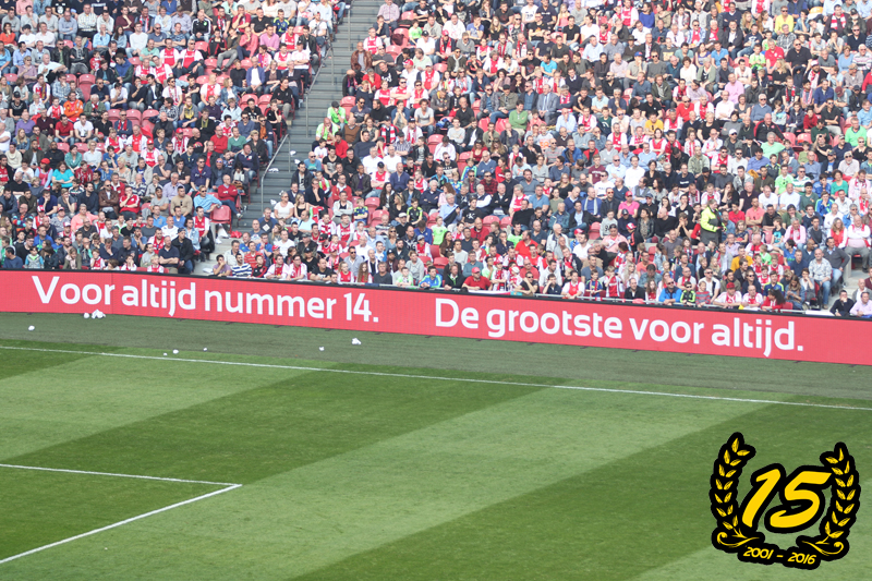 In een week tijd werd er gezamenlijk een stadionbrede choreo bereid en een doek over twee ringen gemaakt door VAK410 en de F-Side. Zelden voelde zeven dagen zo kort maar de motivatie met zijn allen om deze dag onvergetelijk te maken was voldoende voor iedereen. Johan Cruijff kreeg het afscheid waar hij als geen ander recht op had.
