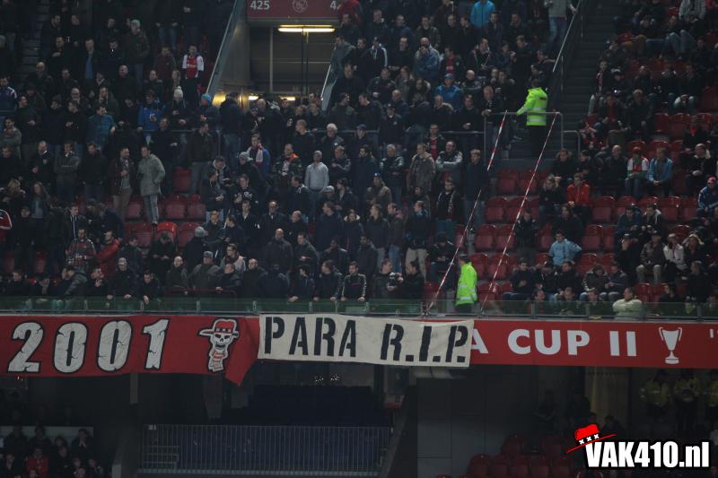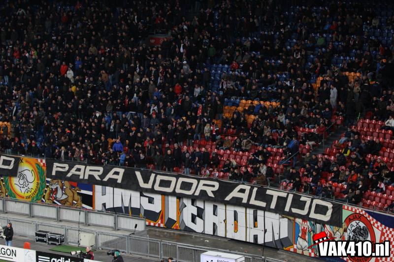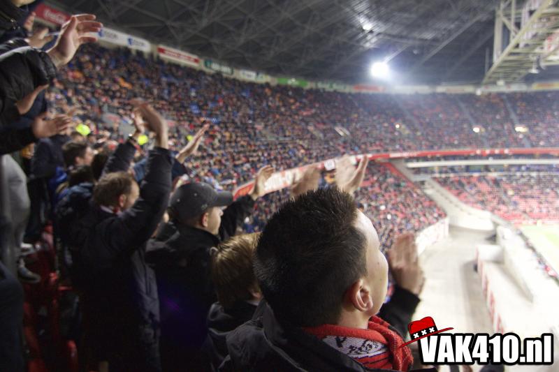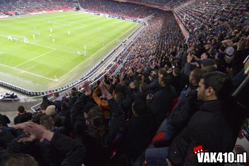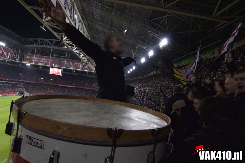 In tegenstelling tot de meeste wedstrijden dit seizoen is het uitvak deze wedstrijd massaal gevuld, zo'n 3.000 supporters van Apoel betreden de Arena. Hierdoor is er naast de strijd op het veld, na een lange tijd ook eindelijk weer eens de (vocale) strijd op de tribune. Nog een extra reden dus om a.s. woensdag alles te geven en Ajax volle bak te ondersteunen op jacht naar een succesvol einde. Zorg dat je vroeg binnen bent en laat zien waarom VAK410 de beste op de tribune is.
