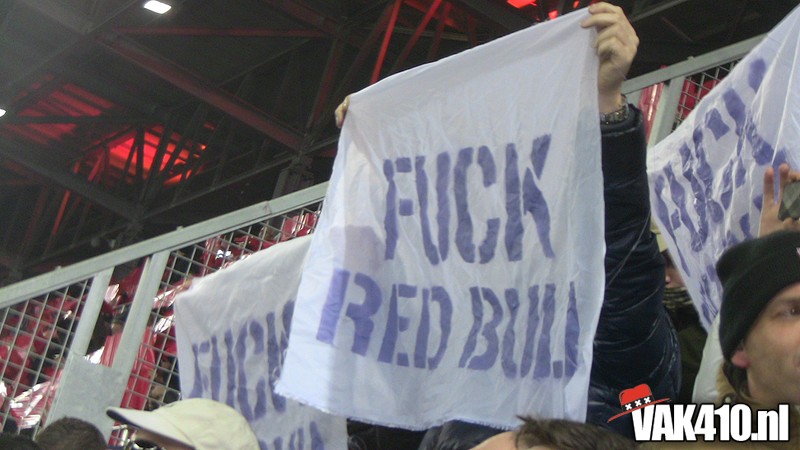 Bij opkomst sierden een 200-tal tekstdoekjes met, in violet paarse letters, FUCK RED BULL het uitvak. Wij zullen ons statement altijd duidelijk blijven maken en daarbij niet wijken voor geen enkele instantie die ons het zwijgen op wilt leggen.