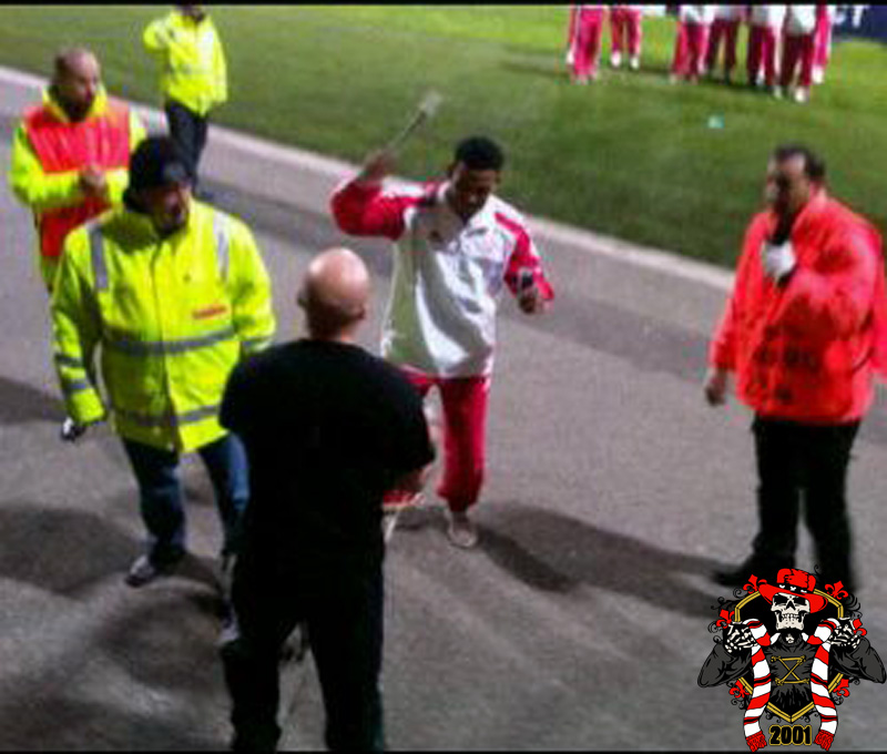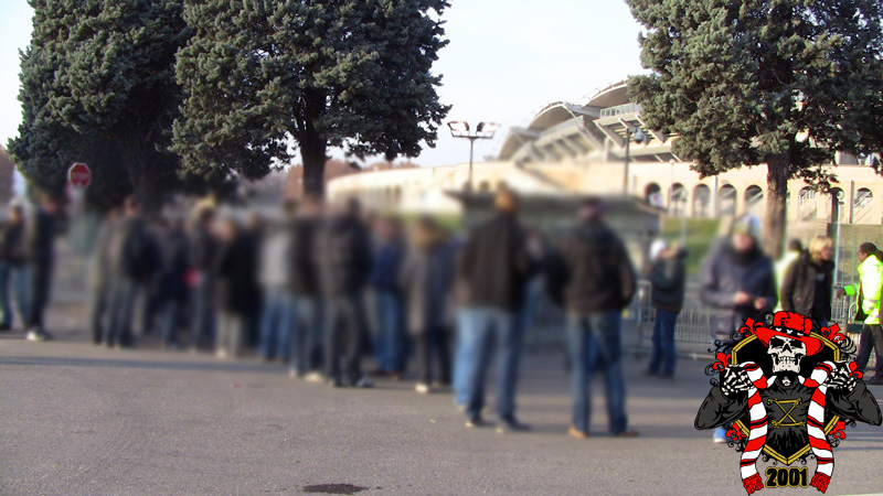 Het begin van een onvergetelijk dag in Lyon. Waar een aardige groep pas na de aftrap het stadion betrad. De oorzaak zat hem in het feit dat er op een paar 100 meter van de middenstip nog een wedstrijd werd gespeeld, waar Ajax wel de volle 3 punten pakte.