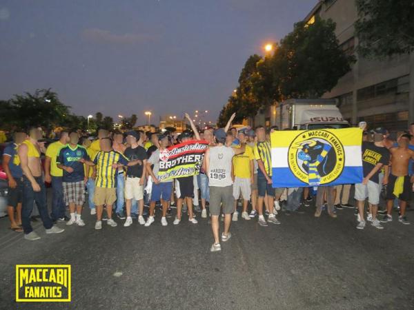 Tijdens mijn vakantie in Israël afgelopen maand wist ik van tevoren al één ding zeker, ik moest de sfeer van de Maccabi Fanatics (GATE 11) meemaken. Nadat ik een rondtour heb gemaakt door Israël kwam ik op maandag 22 juli in Tel Aviv aan. Hier werd me al snel duidelijk dat de volgende dag Maccabi een wedstrijd speelde in de voorronde van de CL. Ik besloot contact te leggen met wat gappies van mij om te kijken of het mogelijk was om via via kaarten te bemachtigen voor Gate 11, aangezien daar al jaren goede banden mee zijn. Na wat telefoonnummers te hebben gekregen kwam ik in contact met enkele jongens van Maccabi die alles voor me regelden. Ook heb ik toen een afspraak gemaakt met iemand van MF om te meeten bij het stadion voorafgaand aan de wedstrijd.