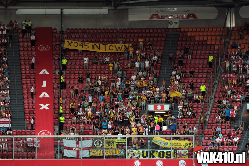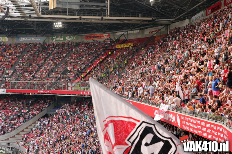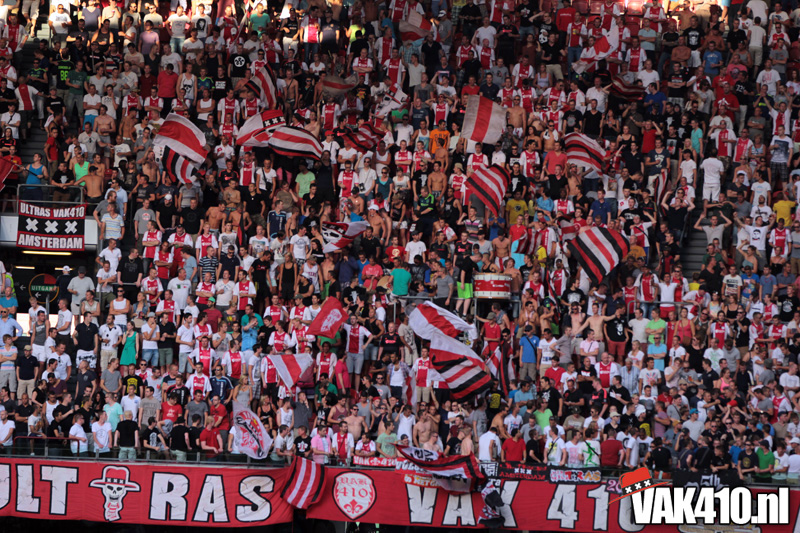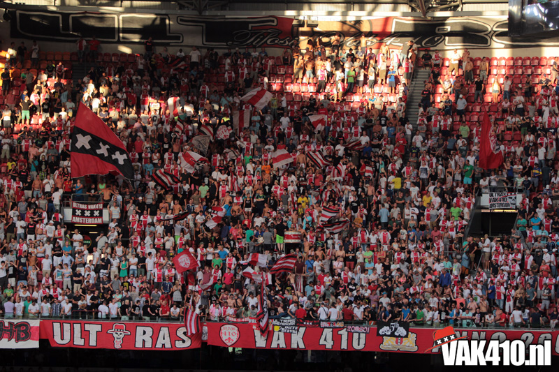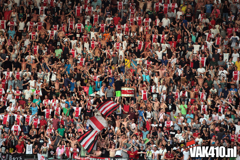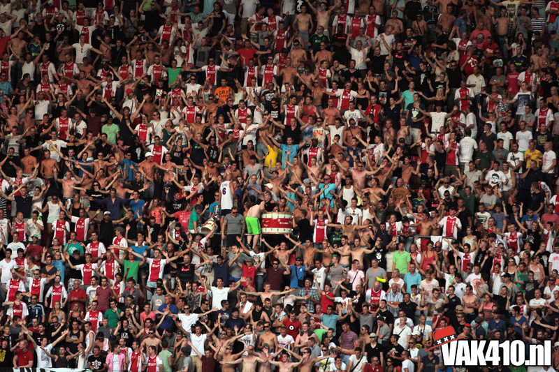 De competitie is weer begonnen, Ajax zet vol in op het record van 4 titels op rij! Dit maal hopelijk resulterend in een huldiging op de plek waar het hoort; de Amsterdamse binnenstad. Ondanks het feit dat de wedstrijd op een vrijdag plaatsvindt staat het grasveldje bij het honk al vroeg vol. Onder het genot van een lekker zonnetje gaan de koude en lauwe biertjes er goed in. Even bijkletsen, zo goed als iedereen is er weer. Over voetbal praten heeft verder weinig zin, zelfs na 5 wedstrijden spelen is het nog steeds mogelijk dat Ajax ineens zijn topspelers verliest. Transferperikelen, het heeft geen zin om je er druk over te maken! De enige dag roept een speler "ik blijf" en de volgende dag komt er "een mooie club met een uitdaging die ik niet kon laten schieten" Wij zullen echter altijd blijven gaan naar onze liefde, ultras everyday! In het stadion worden de supporters van Stuttgart gefeliciteerd met hun overwinning. Na een jarenlange strijd heeft de club eindelijk haar oude logo terug. Traditie is terug in Stuttgart, nu nog in Amsterdam! Ajax wint de wedstrijd overigens zonder bijzonder goed te voetballen vrij eenvoudig met 3-0.