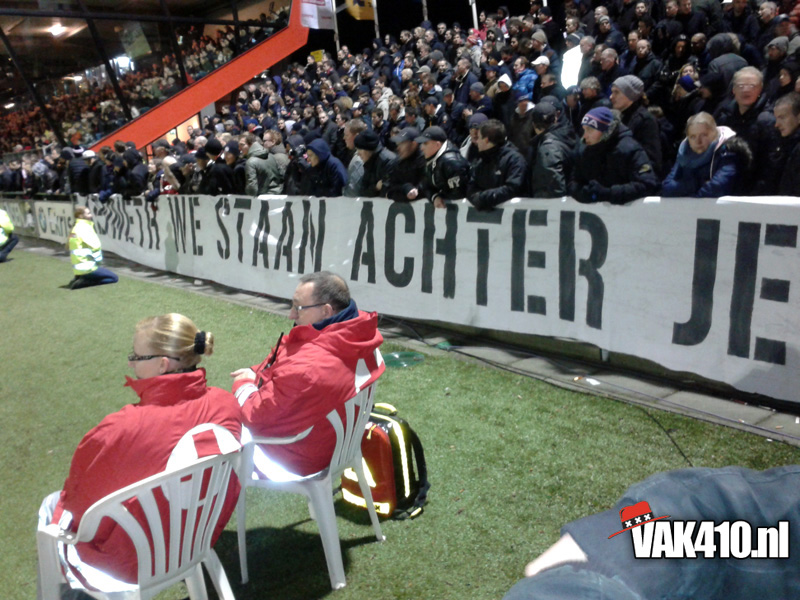 Een prima uitvakje voor ons geregeld. Staand rondom het veld, een bekerwedstrijd op amateurniveau op kunstgras aanschouwen. Heel wat anders dan een uitwedstrijd in Milaan, Glasgow of Barcelona. Het uitvak maakt amper lawaai, aan de overkant zingen ze de songs van VAK410, vaak gewoon de letterlijke tekst. Doe ons maar snel kwartfinale in de beker, Ajax loot Feyenoord in Amsterdam!