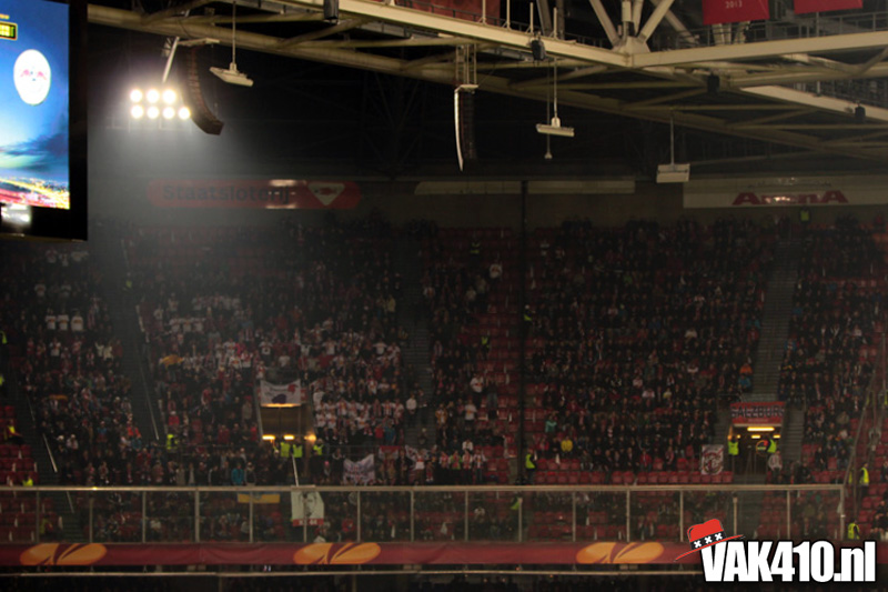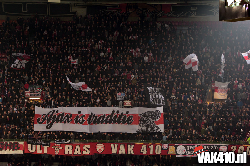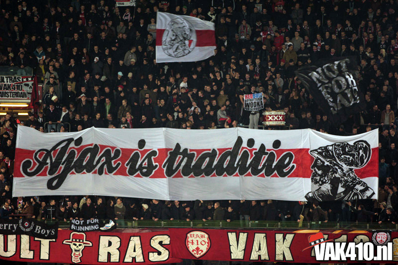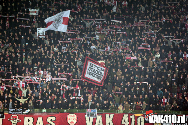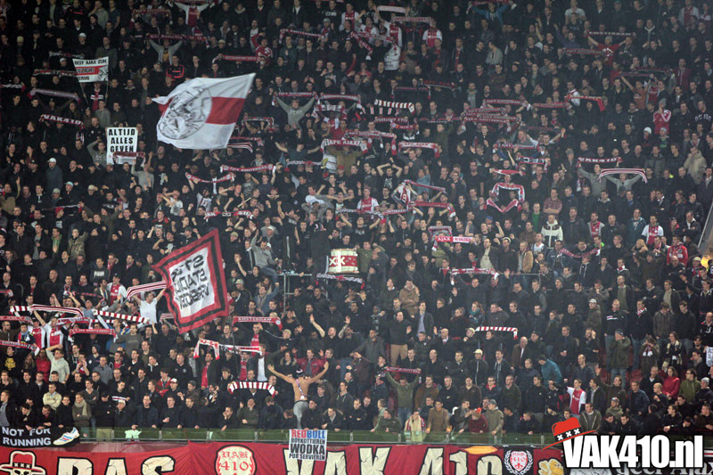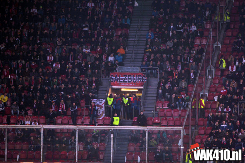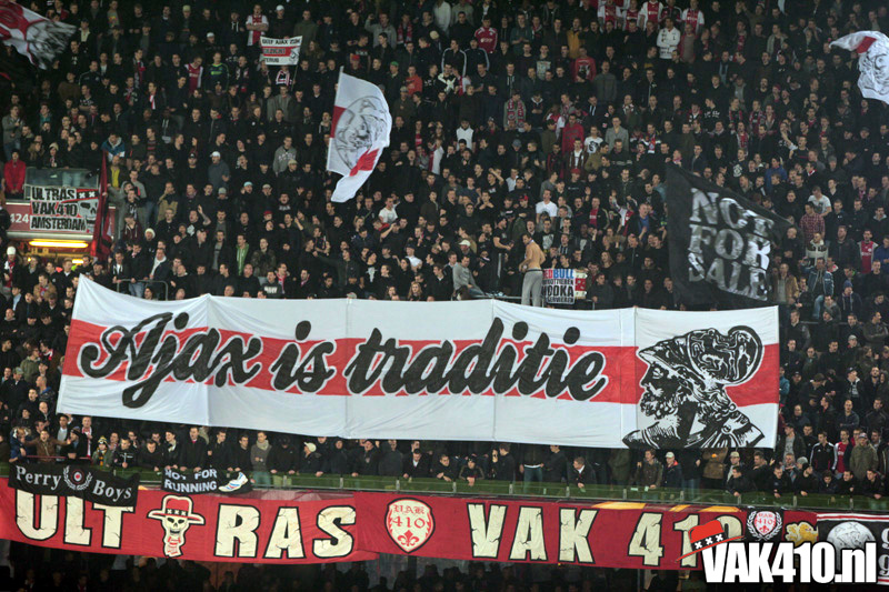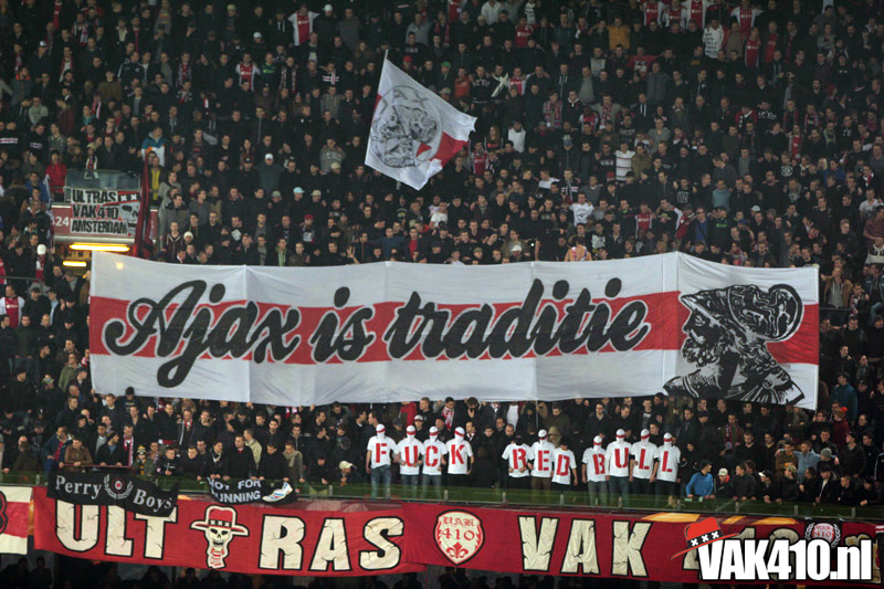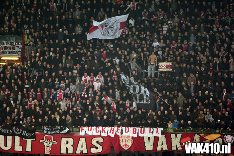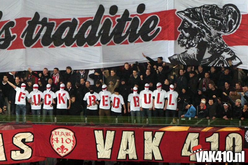 Na de groepsfase in de Champions League wacht ons nu de eerste wedstrijd in de knockout-fase van de Europa League. Ajax loot tegen der Rote Bullen uit Salzburg, een club dat een product uit het hedendaags en moderne voetbal is. Een fantiek voetbalsupporter walgt van zulke teams, veelal gekocht door geld van een groot bedrijf of multimiljonair, met als doel te dienen als marketingobject of slechts als speeltje. In het verleden heeft VAK410 zich altijd nadrukkelijk afgezet tegen clubs als deze, één van de idealen waar tegen wij altijd tegen zullen strijden. VAK410 tegen het moderne voetbal! Je ziel verkopen aan een commerciël bedrijf, iets waar wij onze, maar ook andere clubs voor willen behoeden.